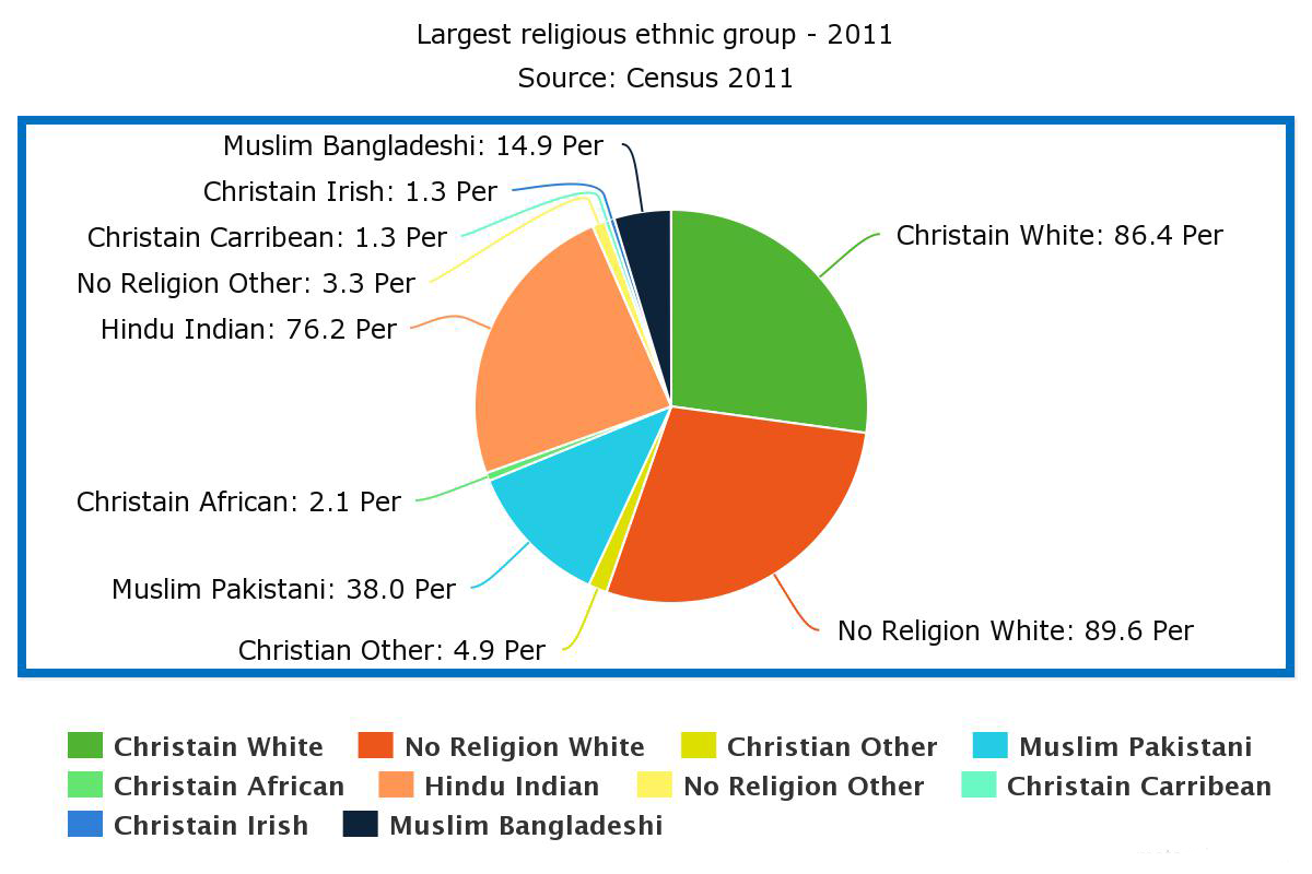 There has been an 8% fall since the 2001 census as more Hindus are born in Britain.